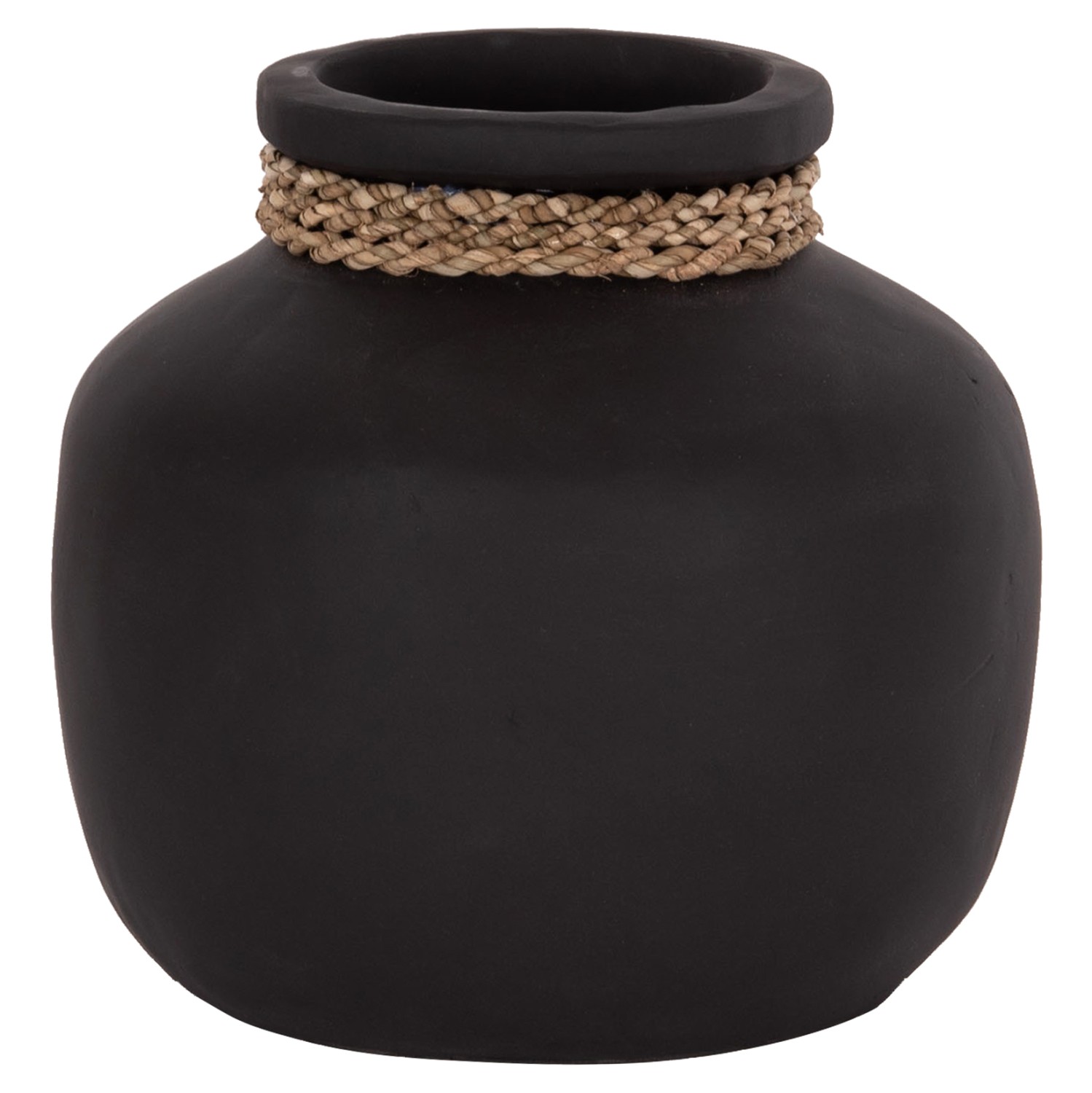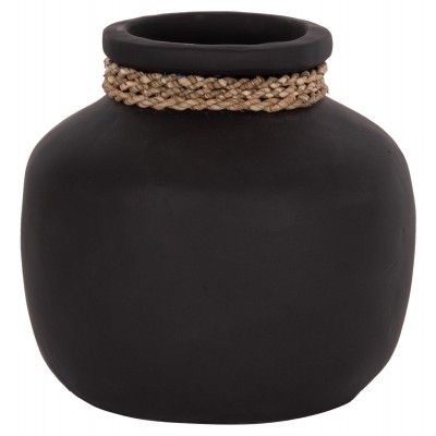 Το επιτραπέζιο χειροποίητο διακοσμητικό βάζο CAMMER είναι κατασκευασμένο εξολοκλήρου από τερακότα σε ΜΑΥΡΟ χρώμα ενώ διαθέτει διακοσμητική πλέξη από seagrass περιμετρικά στον «λαιμό» του βάζου. Ιδανικό για πληθώρα χώρων, τόσο για το σπίτι, όσο και για επαγγελματικούς χώρους.