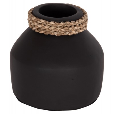 Το επιτραπέζιο χειροποίητο διακοσμητικό βάζο CAMMER είναι κατασκευασμένο εξολοκλήρου από τερακότα σε ΜΑΥΡΟ χρώμα ενώ διαθέτει διακοσμητική πλέξη από seagrass περιμετρικά στον «λαιμό» του βάζου. Ιδανικό για πληθώρα χώρων, τόσο για το σπίτι, όσο και για επαγγελματικούς χώρους.