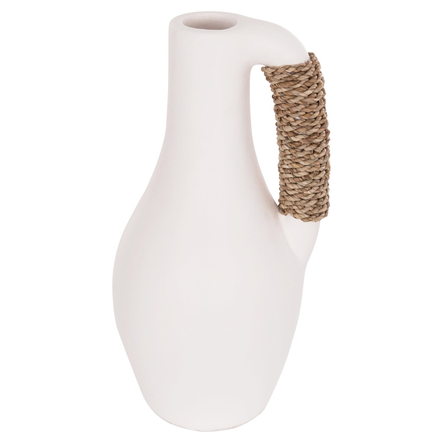 Το επιτραπέζιο χειροποίητο διακοσμητικό βάζο CAMMER είναι κατασκευασμένο εξολοκλήρου από τερακότα σε ΛΕΥΚΟ χρώμα ενώ διαθέτει διακοσμητική πλέξη από seagrass στο χερούλι που διαθέτει. Ιδανικό για πληθώρα χώρων, τόσο για το σπίτι, όσο και για επαγγελματικούς χώρους.