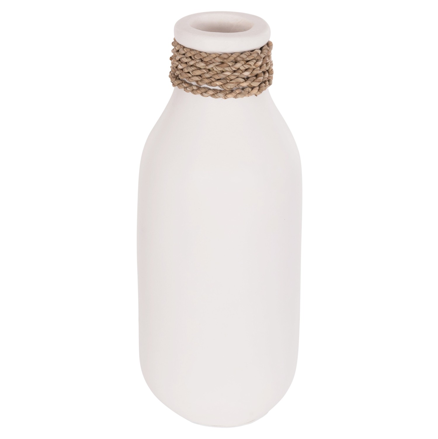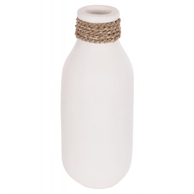 Το επιτραπέζιο χειροποίητο διακοσμητικό βάζο CAMMER έχει σχήμα μποτίλιας και είναι κατασκευασμένο εξολοκλήρου από τερακότα σε ΛΕΥΚΟ χρώμα ενώ διαθέτει διακοσμητική πλέξη από seagrass στον «λαιμό» ακριβώς κάτω από το στόμιο. Ιδανικό για πληθώρα χώρων, τόσο για το σπίτι, όσο και για επαγγελματικούς χώρους.