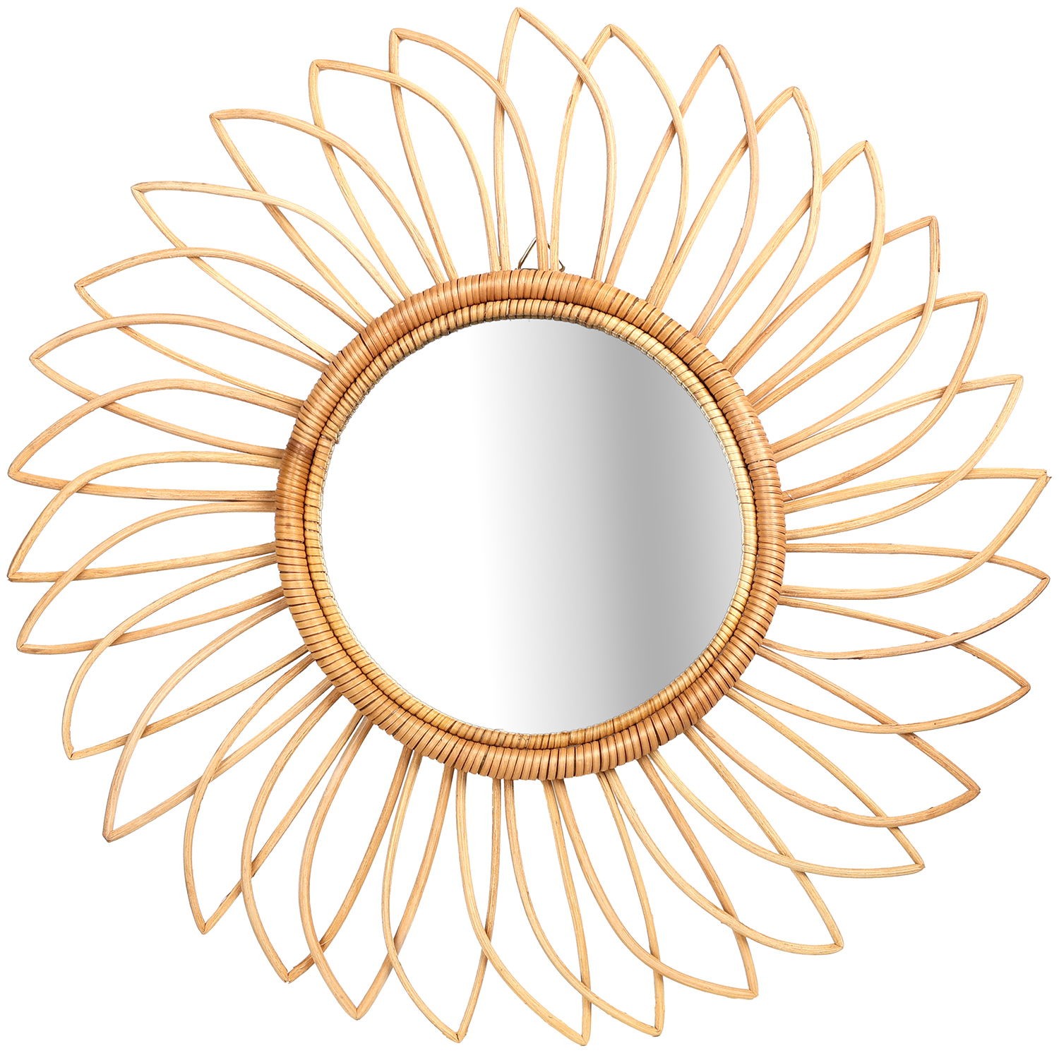 Ο καθρέπτης Sunflower εντυπωσιάζει με τον ιδιαίτερο σχεδιασμό του σε γήινες αποχρώσεις και την κατασκευή από φυσικό ράτταν, προσφέροντας μια ζεστή και φυσική αίσθηση στον χώρο.
