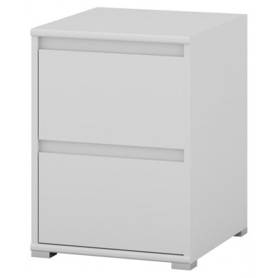 Κομοδίνο με δύο συρτάρια και λεπτές μεταλλικές βάσεις. Ο κομψός σχεδιασμός του το καθιστά μια διαχρονική επιλογή για κάθε υπνοδωμάτιο.