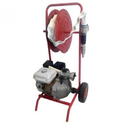 Βενζινοκίνητο αντλητικό πυρόσβεσης σε ειδική βάση με τροχούς και ανέμη για άμεση μεταφορά και χρήση, με αντλία αλουμινίου υψηλής πίεσης. Το σύστημα με αντλία πυρόσβεσης εφοδιάζεται με τετράχρονο αξιόπιστο κινητήρα βενζίνης παγκοσμίου φήμης HONDA GP160. Διαθέτει μάνικα 30 μέτρα και ενισχυμένο αυλό πυρόσβεσης.