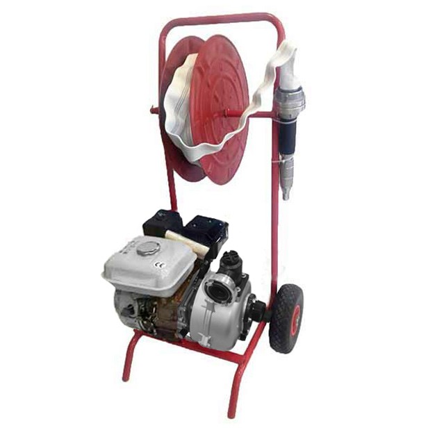 Βενζινοκίνητο αντλητικό πυρόσβεσης σε ειδική βάση με τροχούς και ανέμη για άμεση μεταφορά και χρήση, με αντλία αλουμινίου υψηλής πίεσης. Το σύστημα με αντλία πυρόσβεσης εφοδιάζεται με τετράχρονο αξιόπιστο κινητήρα βενζίνης παγκοσμίου φήμης HONDA GP200. Διαθέτει μάνικα 30 μέτρα και ενισχυμένο αυλό πυρόσβεσης.
