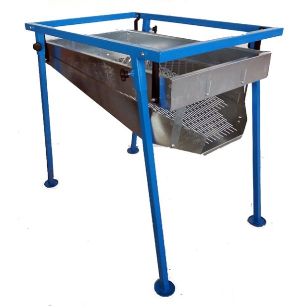 Κινούμενο κόσκινο διαλογής ελιάς και ξηρών καρπών, με καρέ θυρίδες και λεκάνη εξαγωγής. Στιβαρή κατασκευή.