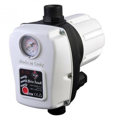 To BRIO TANK MAX είναι μια συσκευή που σχεδιάστηκε για να αυτοματοποιήσει την εκκίνηση και το σταμάτημα μιας ηλεκτραντλίας σχετικά με την μείωση της πίεσης (άνοιγμα βρυσών) και το σταμάτημα της ροής διαμέσου της εγκατάστασης στην πίεση που αυτό είναι ρυθμισμένο.Το BRIO TANK MAX εκτελεί την απαραίτητη λειτουργία του σταματήματος της ηλεκτραντλίας σε περίπτωση έλλειψης νερού, προστατεύοντας έτσι την αντλία.Η παρουσία του μανόμετρου επιβεβαιώνει την πίεση λειτουργίας της εγκατάστασης. Παρέχει προστασία από συχνές εκκινήσεις και από ξηρή λειτουργεία. Αυτόματη επαναφορά σε περίπτωση διακοπής υδροδότησης.