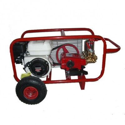 Ψεκαστικό συγκρότημα με πανίσχυρο βενζινοκινητήρα HONDA GP160 για ατελείωτες ώρες λειτουργίας. Τετράχρονος κινητήρας, αμόλυβδη βενζίνη, άμεση εκκίνηση και απλή λειτουργία, ελάχιστη συντήρηση (αλλαγή λαδιών και καθάρισμα φίλτρων αέρα)με την περίφημη ψεκαστική αντλία 3 εμβόλων ΙΝΟΧ της INTERPOWER, INT-22C με bypass, γρασσαδόρο σταθερού ψεκασμού σε κάθε έμβολο, ρύθμιση πίεσης πολλαπλών θέσεων και μοχλό εμπλοκής-απεμπλοκής. Με δυνατότητα 3 παροχών(3 άτομα ψεκάζουν ταυτόχρονα) και μήκος σωλήνων μέχρι 200 μέτρα. Σε σωληνωτό πλαίσιο ΜΕ ΤΡΟΧΟΥΣ! Ιδανικό για επαγγελματίες αλλά και απαιτητικούς ερασιτέχνες.