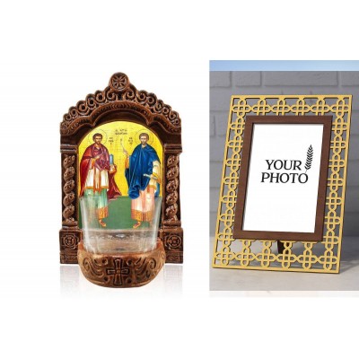 Κριτικάρετε το(τα): Εικόνα Ορθοδοξίας Πολυτελείας με σχεδιο Σταυρούς μαζι με Βάση σε 8 χρώματα με περίγραμμα χρυσό σε ξύλο Plywood (Πλακάζ) με βάση Οι Άγιοι Ανεργοφόροι Κοσμάς και Δαμιανός Λυχνία, Άγιοι Κοσμάς και Δαμιανός Κεραμική επιτραπέζια εικόνα, Άγιοι Ανάργυροι