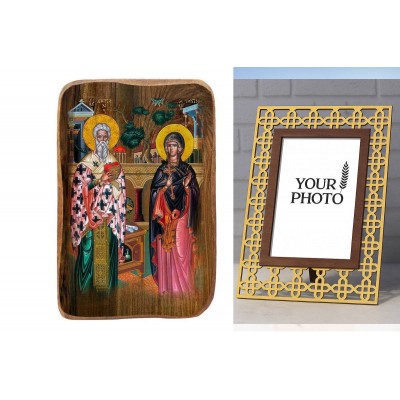Εικόνα Ορθοδοξίας Πολυτελείας με σχεδιο Σταυρούς μαζι με Βάση σε 8 χρώματα με περίγραμμα χρυσό σε ξύλο Plywood (Πλακάζ) με βάση Μπομπονιέρα Βάπτισης Άγιος Κύπριος και Αγία Ιουστίνα Σετ 20 τεμαχίων, Εικόνα Βάπτισης, Χειροποίητη Βυζαντινή εικόνα Bomb