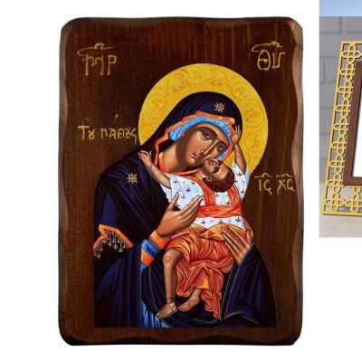 Βασικά Χαρακτηριστικά: - Υλικό: Φυσικό ξύλο λεύκας με κυματιστή άκρη - Σχέδιο: Περίπλοκη λιθογραφική τέχνη με ανάγλυφες λεπτομέρειες - Ανθεκτικότητα: Ειδική επεξεργασία και βερνίκωμα για μέγιστη αντοχή στη φθορά - Χειροποίητο: Κατασκευάζεται στην Ελλάδα από έμπειρους τεχνίτες - Ευελιξία: Μπορεί να κρεμαστεί σε τοίχο - Αναπαράσταση: Παναγία των Παθών (Παναγία του Πάθους), η Παναγία των Παθών Διαθέσιμα μεγέθη: 19x14x3 cm (7,5x5,5x1,2 ίντσες) 24x18x3 cm (9,5x7,1x1,2 ίντσες) 30x22x3 cm (11,8x8,7x1,2 ίντσες) 40x30x3 cm (15,8x11,8x1,2 ίντσες) Αυτή η όμορφα φιλοτεχνημένη εικόνα της Παναγίας της Αμολύντου, γνωστή και ως Παναγία των Παθών, είναι φτιαγμένη από φυσικό ξύλο λεύκας, επιδεικνύοντας περίπλοκη λιθογραφική τέχνη. Οι κυματιστές άκρες του ξύλου προσθέτουν μια μοντέρνα και κομψή πινελιά σε αυτό το ιερό κομμάτι. Το ανάγλυφο σχέδιο είναι ένα αριστούργημα δεξιοτεχνίας, που συνδυάζει την παραδοσιακή αφοσίωση με τη σύγχρονη τέχνη για να δημιουργήσει ένα ουσιαστικό και λατρεμένο αντικείμενο. Χε