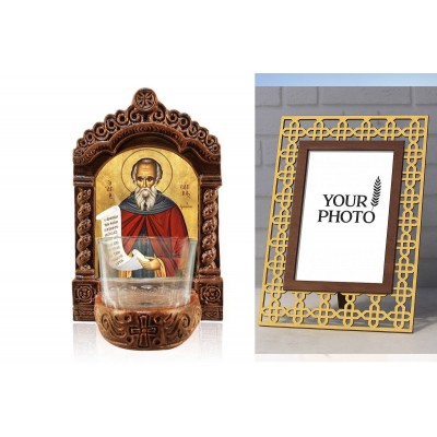 | Όνομα Προϊόντος | Εικόνα Ορθοδοξίας Πολυτελείας με σχεδιο Σταυρούς μαζι με Βάση σε 8 χρώματα με περίγραμμα χρυσό σε ξύλο Plywood (Πλακάζ) με βάση Αγρυπνός Άγιος Σάββας, Άγιος Σάββας ο Αγιασμένος Ελληνικής κατασκευής Επιτραπέζια εικόνα, Χειροποίητο Κεραμικό Φωτιστικό |
