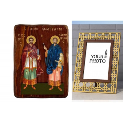 | Όνομα Προϊόντος | Εικόνα Ορθοδοξίας Πολυτελείας με σχεδιο Σταυρούς μαζι με Βάση σε 8 χρώματα με περίγραμμα χρυσό σε ξύλο Plywood (Πλακάζ) με βάση Εικόνα των Αγίων Άμισθων Κοσμά και Δαμιανού, Χειροποίητη ελληνορθόδοξη εικόνα, επιτοίχια πλάκα βυζαντινής τέχνης, θρησκε |