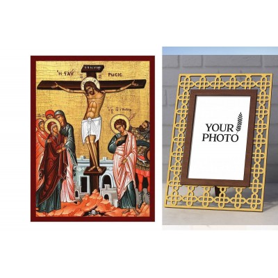 Εικόνα Ορθοδοξίας Πολυτελείας με σχεδιο Σταυρούς μαζι με Βάση σε 8 χρώματα με περίγραμμα χρυσό σε ξύλο Plywood (Πλακάζ) με βάση Εικόνα Η Σταύρωση του Χριστού, Χειροποίητη Ελληνορθόδοξη εικόνα του Ιησού Χριστού, Κρεμαστή πλάκα βυζαντινής τέχνης, βυζ