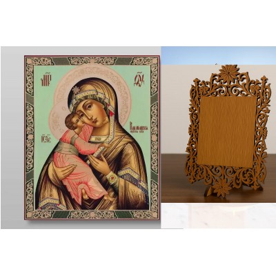 Σετ 2 τεμαχίων – Εικόνα Ορθοδοξίας Δαντέλα μαζι με Βάση σε 8 χρώματα με περίγραμμα χρυσό σε ξύλο Plywood (Πλακάζ) με βάση Η Μητέρα του Θεού Βλαντιμίρ Χειροποίητη Ελληνορθόδοξη , Κρεμαστή πλάκα βυζαντινής τέχνης, χριστιανική τέχνη Διάσταση 26x20 cm (10,2 x 7,9 ίντσες) INTRAEKkadro3211-4321073