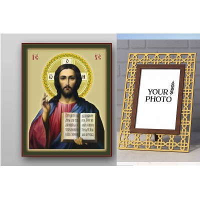 Σετ 2 τεμαχίων – Εικόνα Ορθοδοξίας Πολυτελείας με σχεδιο Σταυρούς μαζι με Βάση σε 8 χρώματα με περίγραμμα χρυσό σε ξύλο Plywood (Πλακάζ) με βάση Εικόνα του Ιησού Χριστού - Χειροποίητη Ελληνορθόδοξη , Κρεμαστή πλάκα βυζαντινής τέχνης, χριστιανική τέχνη Διάσταση 15x11 cm (5,9 x 4,3 ίντσες) INTRAEK3kadro3211-21084