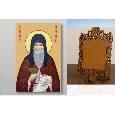 Σετ 2 τεμαχίων – Εικόνα Ορθοδοξίας Δαντέλα μαζι με Βάση σε 8 χρώματα με περίγραμμα χρυσό σε ξύλο Plywood (Πλακάζ) με βάση Αγαπίτ του Πετσέρσκ Σεβασμιώτατε αγία γιατρό, Χειροποίητη Ελληνορθόδοξη , Κρεμαστή πλάκα βυζαντινής τέχνης, χριστιανική τέχνη Διάσταση 26x20 cm (10,2 x 7,9 ίντσες) INTRAEKkadro3211-4321071
