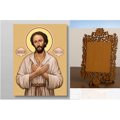 Σετ 2 τεμαχίων – Εικόνα Ορθοδοξίας Δαντέλα μαζι με Βάση σε 8 χρώματα με περίγραμμα χρυσό σε ξύλο Plywood (Πλακάζ) με βάση Αλέξιος ο άνθρωπος του Θεού, άγιος, ευλογημένος, Χειροποίητη Ελληνορθόδοξη , Κρεμαστή πλάκα βυζαντινής τέχνης, χριστιανική τέχνη Διάσταση 26x20 cm (10,2 x 7,9 ίντσες) INTRAEKkadro3211-4321065