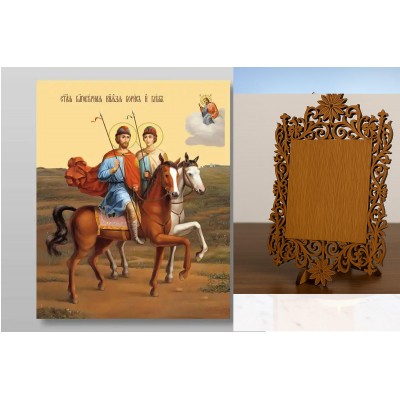 Σετ 2 τεμαχίων – Εικόνα Ορθοδοξίας Δαντέλα μαζι με Βάση σε 8 χρώματα με περίγραμμα χρυσό σε ξύλο Plywood (Πλακάζ) με βάση Boris and Gleb άγιος ευγενής πρίγκιπας μάρτυρες Χειροποίητη Ελληνορθόδοξη , Κρεμαστή πλάκα βυζαντινής τέχνης, χριστιανική τέχνη