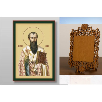 Σετ 2 τεμαχίων – Εικόνα Ορθοδοξίας Δαντέλα μαζι με Βάση σε 8 χρώματα με περίγραμμα χρυσό σε ξύλο Plywood (Πλακάζ) με βάση Ο Μέγας Βασίλειος Χειροποίητη Ελληνορθόδοξη , Κρεμαστή πλάκα βυζαντινής τέχνης, χριστιανική τέχνη Διάσταση 26x20 cm (10,2 x 7,9
