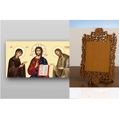 Σετ 2 τεμαχίων – Βασικά Χαρακτηριστικά: - Σχέδιο: Κλασική βυζαντινή εικονογραφία με ζωηρό κόκκινο και χρυσο περίγραμμα - Υλικό: Ξύλο Μασίφ Φλαμουρία υψηλής αντοχής με προστατευτικό βερνίκι για ποιότητα που διαρκεί - Προέλευση: Χειροποίητο στην Ελλάδα - Σκοπός: Ιδανικό για γωνιές προσευχής, εκκλησίες, διακόσμηση σπιτιού ή ως δώρο με νόημα Διαθέσιμα μεγέθη: 10x7 cm (3,9 x 2,8 ίντσες) 15x11 cm (5,9 x 4,3 ίντσες) 21x15 cm (8,3 x 5,9 ίντσες) 26x20 cm (10,2 x 7,9 ίντσες) 40x30 cm (15,8 x 11,8 ίντσες) 45x35 cm (17,7 x 13,8 ίντσες) 50x40 cm (19,7 x 15,8 ίντσες) Διατίθεται σε 8 αποχρώσεις: Κερασία (Cherry) Light Grey (Γκρι) Light Walnut (Καρυδί Ανοιχτό) Oregon Pine (Οξιά) Walnut (Καρυδί Σκούρο) Wenge Άχρωμο (Natural) λευκο χρωμα με νερα , Αχρωμο και Όρεγκον