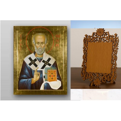 Σετ 2 τεμαχίων – Εικόνα Ορθοδοξίας Δαντέλα μαζι με Βάση σε 8 χρώματα με περίγραμμα χρυσό σε ξύλο Plywood (Πλακάζ) με βάση Εικόνα του Αγίου Νικολάου - Χειροποίητη Ελληνορθόδοξη , Κρεμαστή πλάκα βυζαντινής τέχνης, χριστιανική τέχνη Διάσταση 26x20 cm (10,2 x 7,9 ίντσες) INTRAEKkadro3211-432986