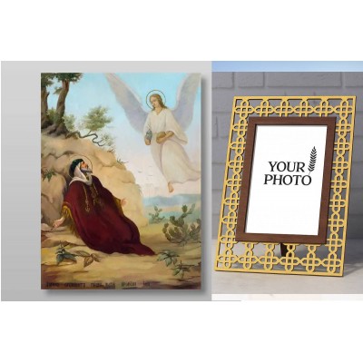 Σετ 2 τεμαχίων – Εικόνα Ορθοδοξίας Πολυτελείας με σχεδιο Σταυρούς μαζι με Βάση σε 8 χρώματα με περίγραμμα χρυσό σε ξύλο Plywood (Πλακάζ) με βάση Ένας άγγελος ταΐζει τον προφήτη Ηλία Χειροποίητη Ελληνορθόδοξη , Κρεμαστή πλάκα βυζαντινής τέχνης, χριστιανική τέχνη Διάσταση 15x11 cm (5,9 x 4,3 ίντσες) INTRAEK3kadro3211-2890