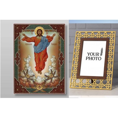 Σετ 2 τεμαχίων – Εικόνα Ορθοδοξίας Πολυτελείας με σχεδιο Σταυρούς μαζι με Βάση σε 8 χρώματα με περίγραμμα χρυσό σε ξύλο Plywood (Πλακάζ) με βάση Η Ανάληψη του Κυρίου μας Ιησού Χριστού, Χειροποίητη Ελληνορθόδοξη , Κρεμαστή πλάκα βυζαντινής τέχνης, χ