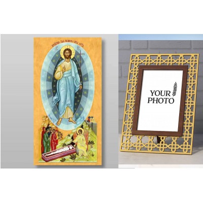Σετ 2 τεμαχίων – Εικόνα Ορθοδοξίας Πολυτελείας με σχεδιο Σταυρούς μαζι με Βάση σε 8 χρώματα με περίγραμμα χρυσό σε ξύλο Plywood (Πλακάζ) με βάση Ανάσταση του Χριστού Χειροποίητη Ελληνορθόδοξη , Κρεμαστή πλάκα βυζαντινής τέχνης, χριστιανική τέχνη Διάσταση 15x11 cm (5,9 x 4,3 ίντσες) INTRAEK3kadro3211-2811