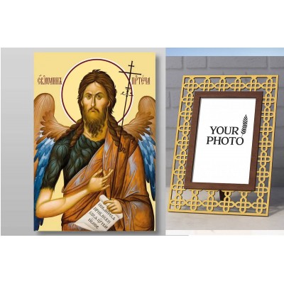 Σετ 2 τεμαχίων – Εικόνα Ορθοδοξίας Πολυτελείας με σχεδιο Σταυρούς μαζι με Βάση σε 8 χρώματα με περίγραμμα χρυσό σε ξύλο Plywood (Πλακάζ) με βάση Ιωάννης ο Βαπτιστής προφήτης, Χειροποίητη Ελληνορθόδοξη , Κρεμαστή πλάκα βυζαντινής τέχνης, χριστιανική τέχνη Διάσταση 15x11 cm (5,9 x 4,3 ίντσες) INTRAEK3kadro3211-2798