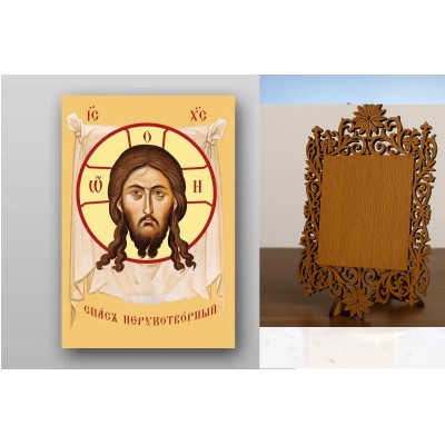 Σετ 2 τεμαχίων – Εικόνα Ορθοδοξίας Δαντέλα μαζι με Βάση σε 8 χρώματα με περίγραμμα χρυσό σε ξύλο Plywood (Πλακάζ) με βάση Το Savior Not Made by Hands Χειροποίητη Ελληνορθόδοξη , Κρεμαστή πλάκα βυζαντινής τέχνης, χριστιανική τέχνη Διάσταση 26x20 cm (1