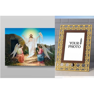 Σετ 2 τεμαχίων – Εικόνα Ορθοδοξίας Πολυτελείας με σχεδιο Σταυρούς μαζι με Βάση σε 8 χρώματα με περίγραμμα χρυσό σε ξύλο Plywood (Πλακάζ) με βάση Ανάσταση του Χριστού Χειροποίητη Ελληνορθόδοξη , Κρεμαστή πλάκα βυζαντινής τέχνης, χριστιανική τέχνη Διάσταση 15x11 cm (5,9 x 4,3 ίντσες) INTRAEK3kadro3211-2787