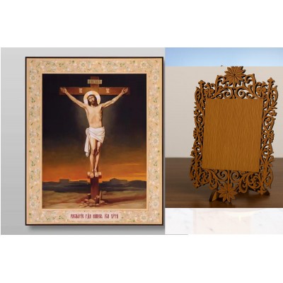 Σετ 2 τεμαχίων – Εικόνα Ορθοδοξίας Δαντέλα μαζι με Βάση σε 8 χρώματα με περίγραμμα χρυσό σε ξύλο Plywood (Πλακάζ) με βάση Γολγοθά, Σταυρός, Σταυρός, Χειροποίητη Ελληνορθόδοξη , Κρεμαστή πλάκα βυζαντινής τέχνης, χριστιανική τέχνη Διάσταση 26x20 cm (10,2 x 7,9 ίντσες) INTRAEKkadro3211-432943