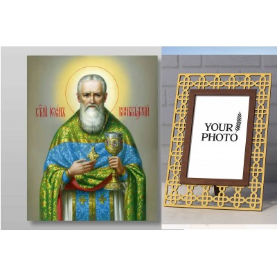 Σετ 2 τεμαχίων – Εικόνα Ορθοδοξίας Πολυτελείας με σχεδιο Σταυρούς μαζι με Βάση σε 8 χρώματα με περίγραμμα χρυσό σε ξύλο Plywood (Πλακάζ) με βάση Ιωάννης της Κρονστάνδης δίκαιος αρχιερέας, Χειροποίητη Ελληνορθόδοξη , Κρεμαστή πλάκα βυζαντινής τέχνης, χριστιανική τέχνη Διάσταση 15x11 cm (5,9 x 4,3 ίντσες) INTRAEK3kadro3211-2741