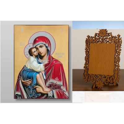 Σετ 2 τεμαχίων – Εικόνα Ορθοδοξίας Δαντέλα μαζι με Βάση σε 8 χρώματα με περίγραμμα χρυσό σε ξύλο Plywood (Πλακάζ) με βάση Εικόνα της Μητέρας του Θεού Donskaya Χειροποίητη Ελληνορθόδοξη , Κρεμαστή πλάκα βυζαντινής τέχνης, χριστιανική τέχνη Διάσταση 26x20 cm (10,2 x 7,9 ίντσες) INTRAEKkadro3211-432912