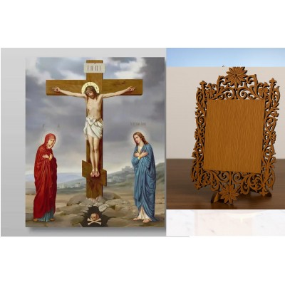 Όνομα Προϊόντος Σετ 2 τεμαχίων – Εικόνα Ορθοδοξίας Δαντέλα μαζι με Βάση σε 8 χρώματα με περίγραμμα χρυσό σε ξύλο Plywood (Πλακάζ) με βάση Γολγοθά Χειροποίητη Ελληνορθόδοξη , Κρεμαστή πλάκα βυζαντινής τέχνης, χριστιανική τέχνη Διάσταση 26x20 cm (10,2 x 7,9 ίντσες) IN