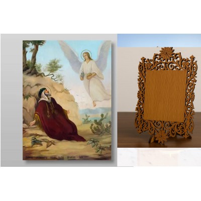 Σετ 2 τεμαχίων – Εικόνα Ορθοδοξίας Δαντέλα μαζι με Βάση σε 8 χρώματα με περίγραμμα χρυσό σε ξύλο Plywood (Πλακάζ) με βάση Ένας άγγελος ταΐζει τον προφήτη Ηλία Χειροποίητη Ελληνορθόδοξη , Κρεμαστή πλάκα βυζαντινής τέχνης, χριστιανική τέχνη Διάσταση 26x20 cm (10,2 x 7,9 ίντσες) INTRAEKkadro3211-432890