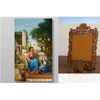 Σετ 2 τεμαχίων – Εικόνα Ορθοδοξίας Δαντέλα μαζι με Βάση σε 8 χρώματα με περίγραμμα χρυσό σε ξύλο Plywood (Πλακάζ) με βάση Ο Χριστός με τη Μάρθα και τη Μαρία Χειροποίητη Ελληνορθόδοξη , Κρεμαστή πλάκα βυζαντινής τέχνης, χριστιανική τέχνη Διάσταση 26x20 cm (10,2 x 7,9 ίντσες) INTRAEKkadro3211-432866