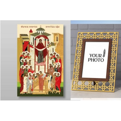 Σετ 2 τεμαχίων – Εικόνα Ορθοδοξίας Πολυτελείας με σχεδιο Σταυρούς μαζι με Βάση σε 8 χρώματα με περίγραμμα χρυσό σε ξύλο Plywood (Πλακάζ) με βάση Pokrov Εικόνα της Μητέρας του Θεού Χειροποίητη Ελληνορθόδοξη , Κρεμαστή πλάκα βυζαντινής τέχνης, χριστιανική τέχνη Διάσταση 21x15 cm (8,3 x 5,9 ίντσες) INTRAEK3kadro3211-321176