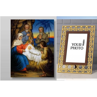 Σετ 2 τεμαχίων – Εικόνα Ορθοδοξίας Πολυτελείας με σχεδιο Σταυρούς μαζι με Βάση σε 8 χρώματα με περίγραμμα χρυσό σε ξύλο Plywood (Πλακάζ) με βάση Εικόνα της Γέννησης του Χριστού - Χειροποίητη Ελληνορθόδοξη , Κρεμαστή πλάκα βυζαντινής τέχνης, χριστιανική τέχνη Διάσταση 21x15 cm (8,3 x 5,9 ίντσες) INTRAEK3kadro3211-321162
