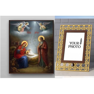Σετ 2 τεμαχίων – Εικόνα Ορθοδοξίας Πολυτελείας με σχεδιο Σταυρούς μαζι με Βάση σε 8 χρώματα με περίγραμμα χρυσό σε ξύλο Plywood (Πλακάζ) με βάση Εικόνα της Γέννησης του Χριστού - Χειροποίητη Ελληνορθόδοξη , Κρεμαστή πλάκα βυζαντινής τέχνης, χριστιανική τέχνη Διάσταση 21x15 cm (8,3 x 5,9 ίντσες) INTRAEK3kadro3211-321159