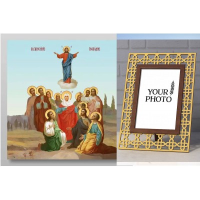 Σετ 2 τεμαχίων – Εικόνα Ορθοδοξίας Πολυτελείας με σχεδιο Σταυρούς μαζι με Βάση σε 8 χρώματα με περίγραμμα χρυσό σε ξύλο Plywood (Πλακάζ) με βάση Η Ανάληψη του Κυρίου μας Ιησού Χριστού, Χειροποίητη Ελληνορθόδοξη , Κρεμαστή πλάκα βυζαντινής τέχνης, χριστιανική τέχνη Διάσταση 21x15 cm (8,3 x 5,9 ίντσες) INTRAEK3kadro3211-321126