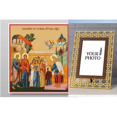 Σετ 2 τεμαχίων – Εικόνα Ορθοδοξίας Πολυτελείας με σχεδιο Σταυρούς μαζι με Βάση σε 8 χρώματα με περίγραμμα χρυσό σε ξύλο Plywood (Πλακάζ) με βάση Εισαγωγή της Θεοτόκου στο Ναό, Χειροποίητη Ελληνορθόδοξη , Κρεμαστή πλάκα βυζαντινής τέχνης, χριστιανική τέχνη Διάσταση 21x15 cm (8,3 x 5,9 ίντσες) INTRAEK3kadro3211-321095