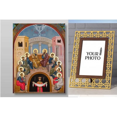 Σετ 2 τεμαχίων – Εικόνα Ορθοδοξίας Πολυτελείας με σχεδιο Σταυρούς μαζι με Βάση σε 8 χρώματα με περίγραμμα χρυσό σε ξύλο Plywood (Πλακάζ) με βάση Κάθοδος του Αγίου Πνεύματος της Πεντηκοστής Χειροποίητη Ελληνορθόδοξη , Κρεμαστή πλάκα βυζαντινής τέχνης, χριστιανική τέχνη Διάσταση 21x15 cm (8,3 x 5,9 ίντσες) INTRAEK3kadro3211-321078