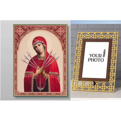 Σετ 2 τεμαχίων – Εικόνα Ορθοδοξίας Πολυτελείας με σχεδιο Σταυρούς μαζι με Βάση σε 8 χρώματα με περίγραμμα χρυσό σε ξύλο Plywood (Πλακάζ) με βάση Επτά Βέλη Εικόνα της Μητέρας του Θεού Χειροποίητη Ελληνορθόδοξη , Κρεμαστή πλάκα βυζαντινής τέχνης, χριστιανική τέχνη Διάσταση 21x15 cm (8,3 x 5,9 ίντσες) INTRAEK3kadro3211-321012