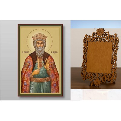 Σετ 2 τεμαχίων – Εικόνα Ορθοδοξίας Δαντέλα μαζι με Βάση σε 8 χρώματα με περίγραμμα χρυσό σε ξύλο Plywood (Πλακάζ) με βάση Vladimir Equal to the Apostles Grand Duke, Χειροποίητη Ελληνορθόδοξη , Κρεμαστή πλάκα βυζαντινής τέχνης, χριστιανική τέχνη Διάστ