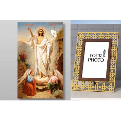 Σετ 2 τεμαχίων – Εικόνα Ορθοδοξίας Πολυτελείας με σχεδιο Σταυρούς μαζι με Βάση σε 8 χρώματα με περίγραμμα χρυσό σε ξύλο Plywood (Πλακάζ) με βάση Ανάσταση του Χριστού Χειροποίητη Ελληνορθόδοξη , Κρεμαστή πλάκα βυζαντινής τέχνης, χριστιανική τέχνη Διάσταση 21x15 cm (8,3 x 5,9 ίντσες) INTRAEK3kadro3211-32966