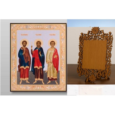 Κριτικάρετε το(τα): Σετ 2 τεμαχίων – Εικόνα Ορθοδοξίας Δαντέλα μαζι με Βάση σε 8 χρώματα με περίγραμμα χρυσό σε ξύλο Plywood (Πλακάζ) με βάση Μάρτυρες Gury Samon και Aviv, Χειροποίητη Ελληνορθόδοξη , Κρεμαστή πλάκα βυζαντινής τέχνης, χριστιανική τέχνη Διάσταση 26x20 cm