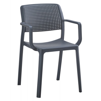 Η πολυθρόνα COMFEE έχει όλα όσα θα θέλατε από ένα τέτοιο έπιπλο. Είναι κατασκευασμένη από μονοκόμματο πολυπροπυλένιο σε ΓΚΡΙ χρώμα με ελαφρώς κυρτή πλάτη, η οποία όπως και το κάθισμα έχουν «τρυπητό» σχέδιο. Όλη η κατασκευή είναι ελαφριά και άνετη με ψηλά μπράτσα, και θα γίνει το αγαπημένο κάθισμα σε όποιο χώρο κι αν τοποθετηθεί χάρη στην πρακτικότητά του. Ιδανική επιλογή και για επαγγελματική χρήση, όπως σε catering κτλ.