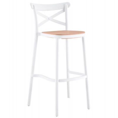 Το σκαμπό CONN είναι ένα λιτό σκαμπό για μπαρ, που έχει όλα όσα θα θέλατε από ένα τέτοιο έπιπλο. Είναι ποιοτικό και κομψό στην όψη, και σίγουρα τραβάει τα βλέμματα. Όλο το σκαμπό είναι από μονοκόμματο πολυπροπυλένιο σε ΛΕΥΚΟ χρώμα με σχετικά χαμηλή πλάτη η οποία έχει ένα κλασικό χιαστί σχέδιο. Το κάθισμα είναι σε ΜΠΕΖ απόχρωση και είναι σε στυλ "ψάθας" πολυπροπυλενίου. Επίσης, τα πόδια ενώνονται με ένα πρακτικότατο υποπόδιο. Το σκαμπό είναι στοιβαζόμενο, ελαφρύ και άνετο, και θα γίνει το αγαπημένο κάθισμα σε όποιο χώρο κι αν τοποθετηθεί χάρη στην πρακτικότητά του.