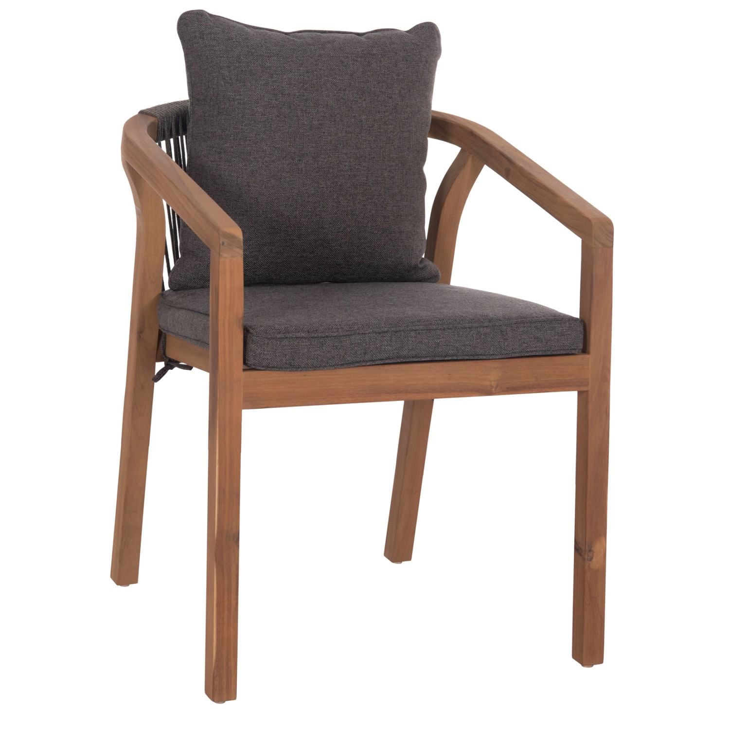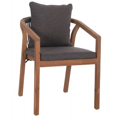 Η πολυθρόνα τραπεζαρίας εξωτερικού χώρου CONTREL είναι κατασκευασμένη από ποιοτικό ξύλο ακακίας και σχοινί σε ΓΚΡΙ χρώμα. Το κάθισμα είναι από ξύλο ενώ στην πλάτη υπάρχει η επένδυση με το σχοινί. Η πολυθρόνα διαθέτει μαξιλάρια σε ΓΚΡΙ χρώμα τόσο στο κάθισμα όσο και στην πλάτη.